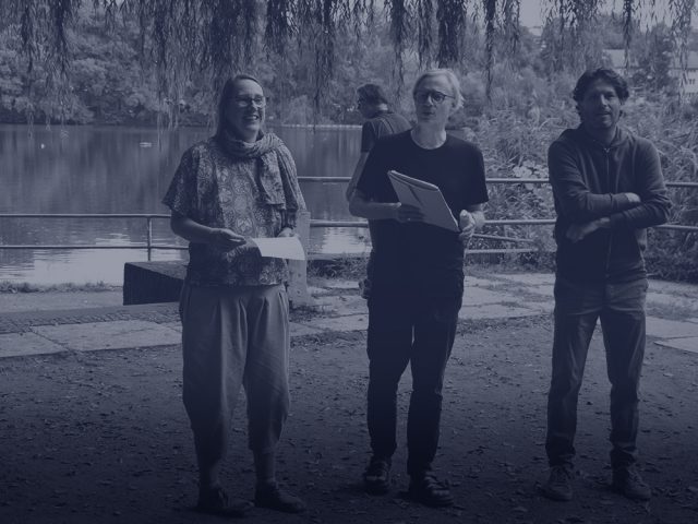 SCHLAMMIG DRECKIG NASS is a multi-day workshop towards a political artistic culture, incorporating on-site actions to create participatory formats for restoring endangered urban biospheres. During three days in September 2021, some workshops on Lake Schäfersee were held. Site specific interventions were sketched in order to provide occasions to facilitate a network between local and global artistic communities and actors. These researched and developed strategies of implementing innovative action models to improve the condition of the city’s waters.